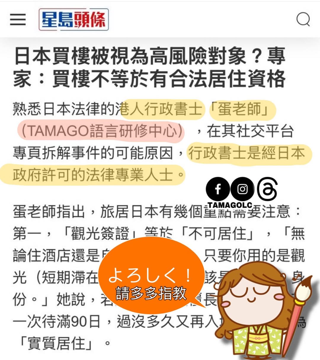 謝謝媒體在報導中引述 #蛋老師 作為行政書士的觀點。