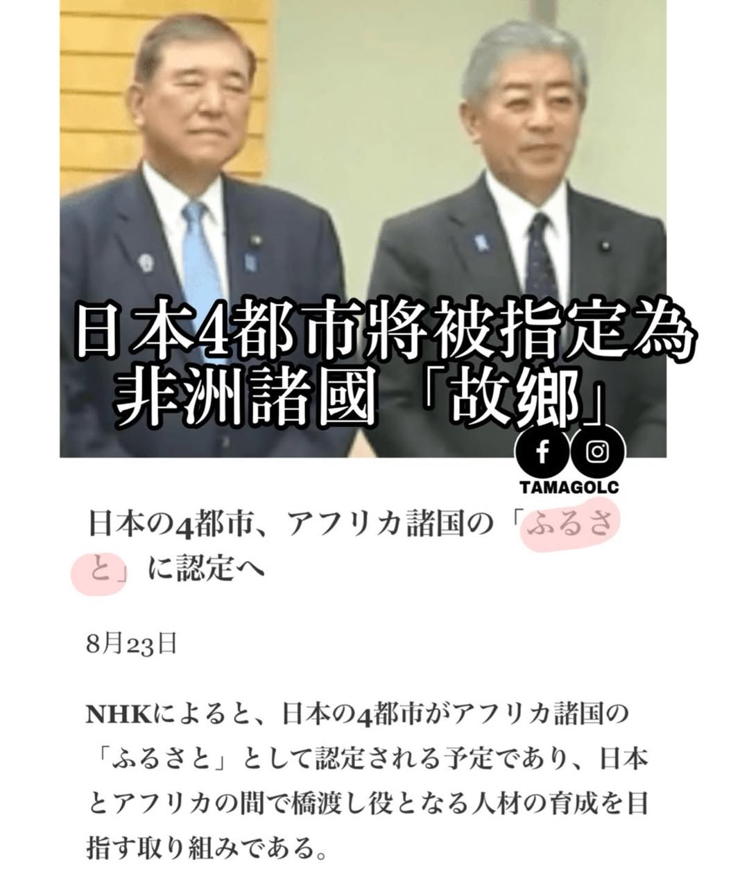 JICA 宣布「計劃將4個日本城市指定為非洲國家的『ふるさと(故鄉)』」