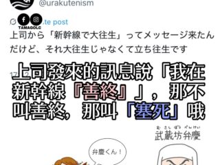 蛋老師雜談 💁🏻♀️立ち往生 vs 大往生 蛋老師Posted on 12/09/2025 一字之差😌生死之別 大家都是「往生」不用分得…(被拖走) 不是!! ◎大往生(だいおうじょう) ➖ 源自佛教用… 閱讀更多