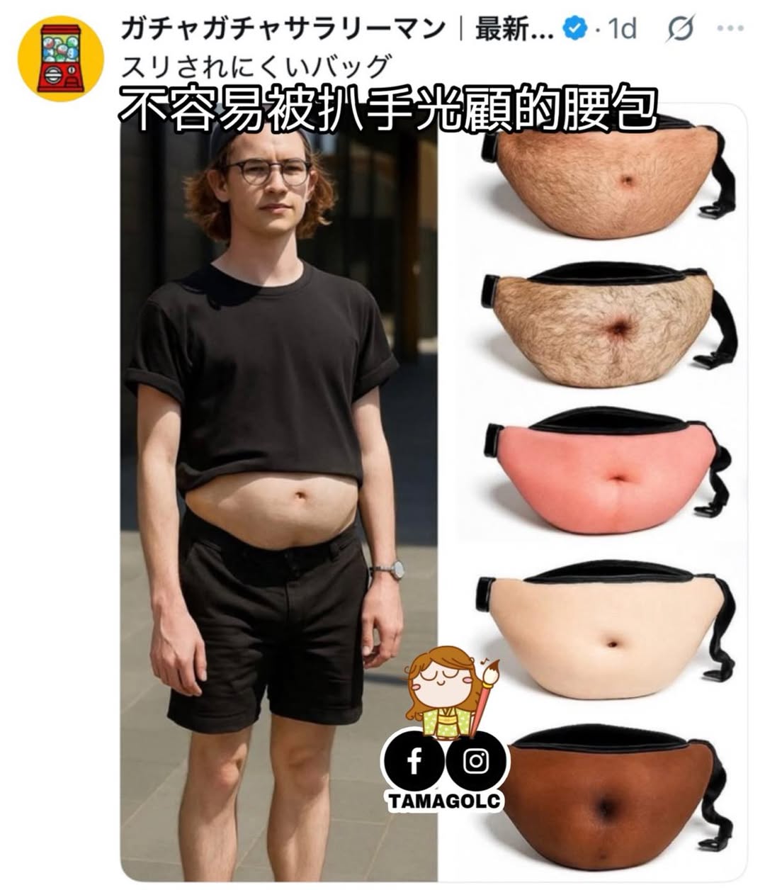 特色:仿真「中年肚腩」,款式選擇包括多毛、冇毛等等。