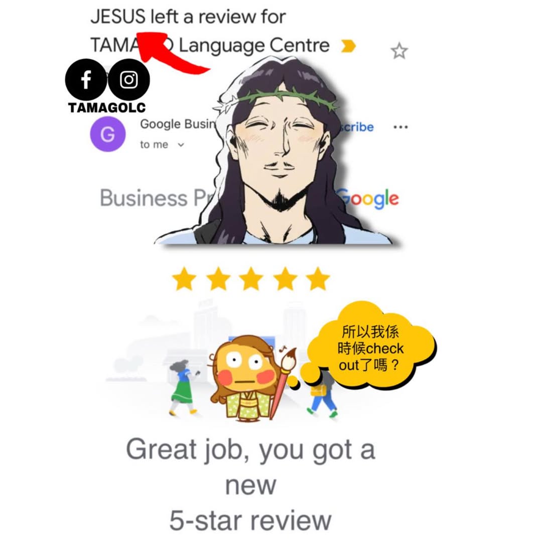 是咁的。今次小天使出動並不是因為要🔞,而係因為小天使可能係最適合做呢件事嘅人。今日注意到收到一個電郵通知:耶穌在Google上留咗⭐️⭐️⭐️⭐️⭐️!滿分好評俾我哦哦哦哦哦~~~~