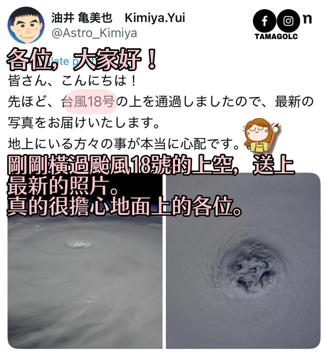 唔係,係來自國際太空站的日本太空人油井亀美也先生的推文。