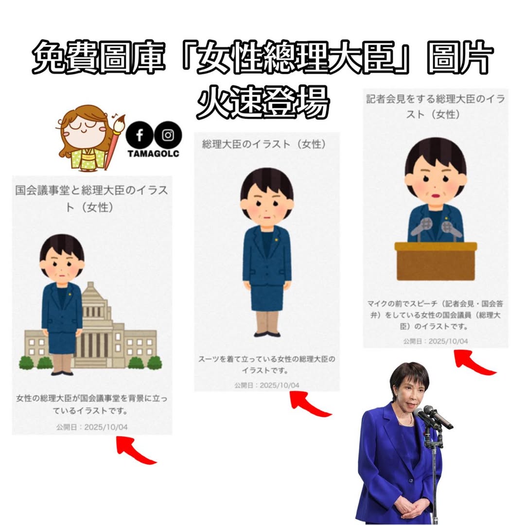 對一般市民來說,更有趣的是:「いらすとや(免費圖庫)」在幾小時內推出了「女性總理」的新素材(圖)。