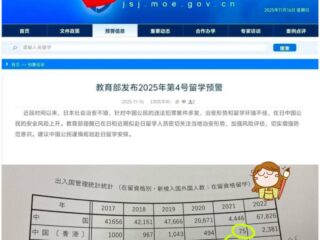 日本時事 【教育部發佈2025年第4號留學預警】 蛋老師Posted on 17/11/2025 //近段時間以來,日本社會治安不靖,針對中國公民的違法犯罪案件多發,治安形勢和留學環境不佳,在日的中國公民的安… 閱讀更多
