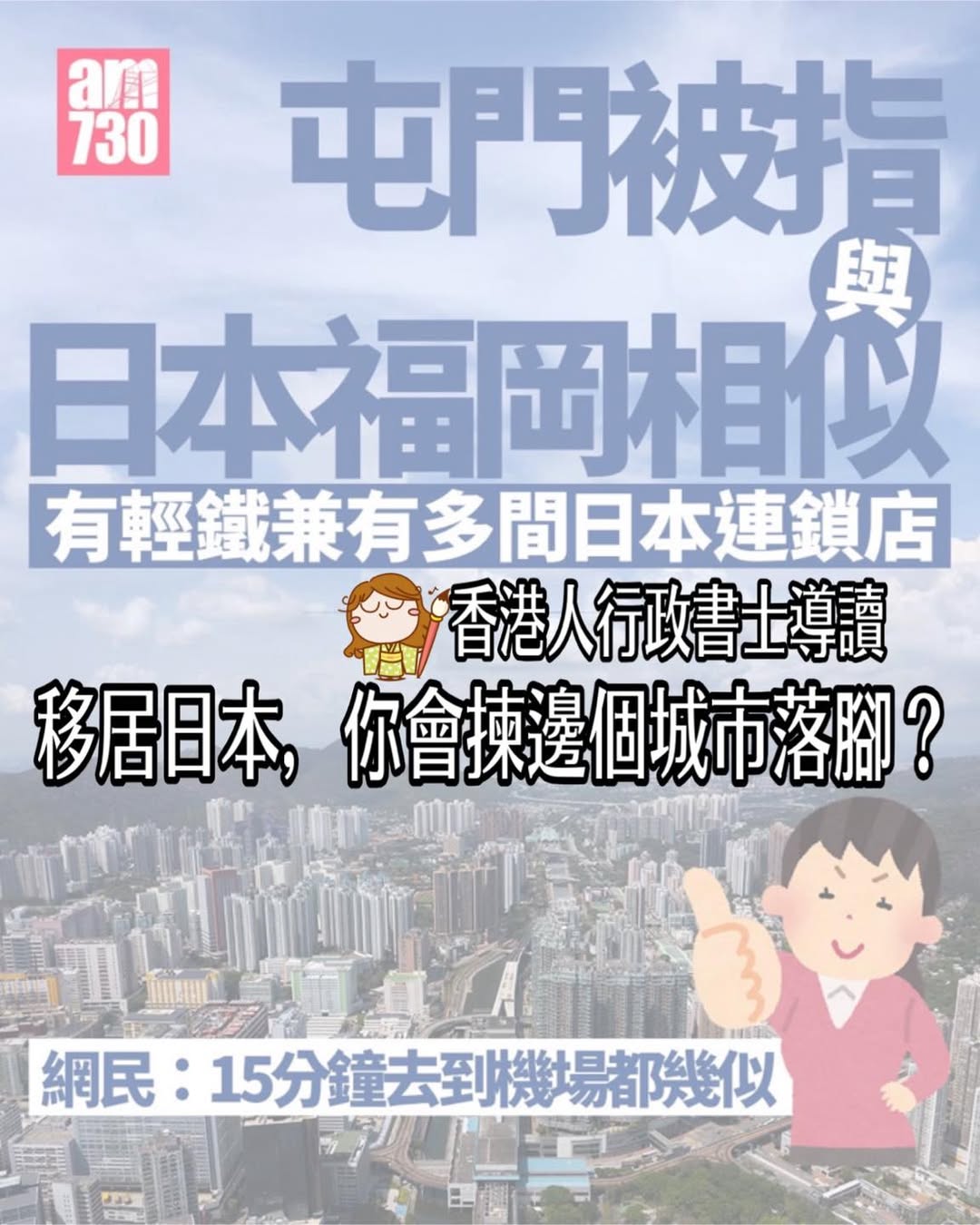 am730話報導「屯門好似日本福岡」呢個比喻⋯⋯其實幾有趣🤔。