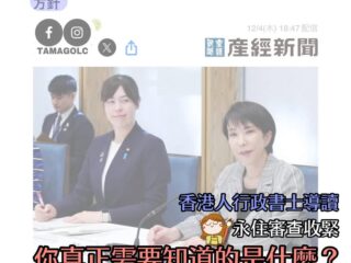 香港人行政書士導讀 永住審查收緊:你真正需要知道的是什麼? 蛋老師Posted on 05/12/2025 💁🏻♀️香港人行政書士導讀 永住審查收緊:你真正需要知道的是什麼? 12月4日的新聞報導,再一次提及「永住許… 閱讀更多