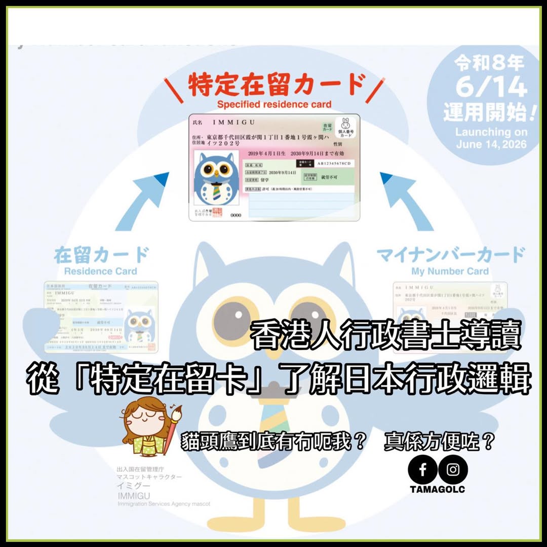 📩如果你想了解自己應否申請特定在留卡、會否影響在留手續、抑或你的在留更新本身已經存在風險,歡迎諮詢~