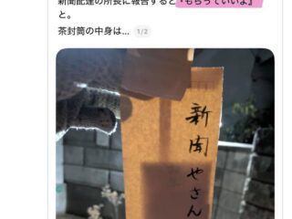 //「半年前開始兼職派報紙的兒子。今天元旦清晨派遞時發現其中一家客戶的收件箱貼了一個啡色信封。 跟派報所所長報…