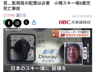 日本時事 😰「沒有賣過給日本公司」 蛋老師Posted on 07/01/2026 去年年底,在北海道小樽的滑雪場發生5歲幼童死亡事故後,確認出營運公司所使用的扶手梯為中國製,於2019 年安裝… 閱讀更多