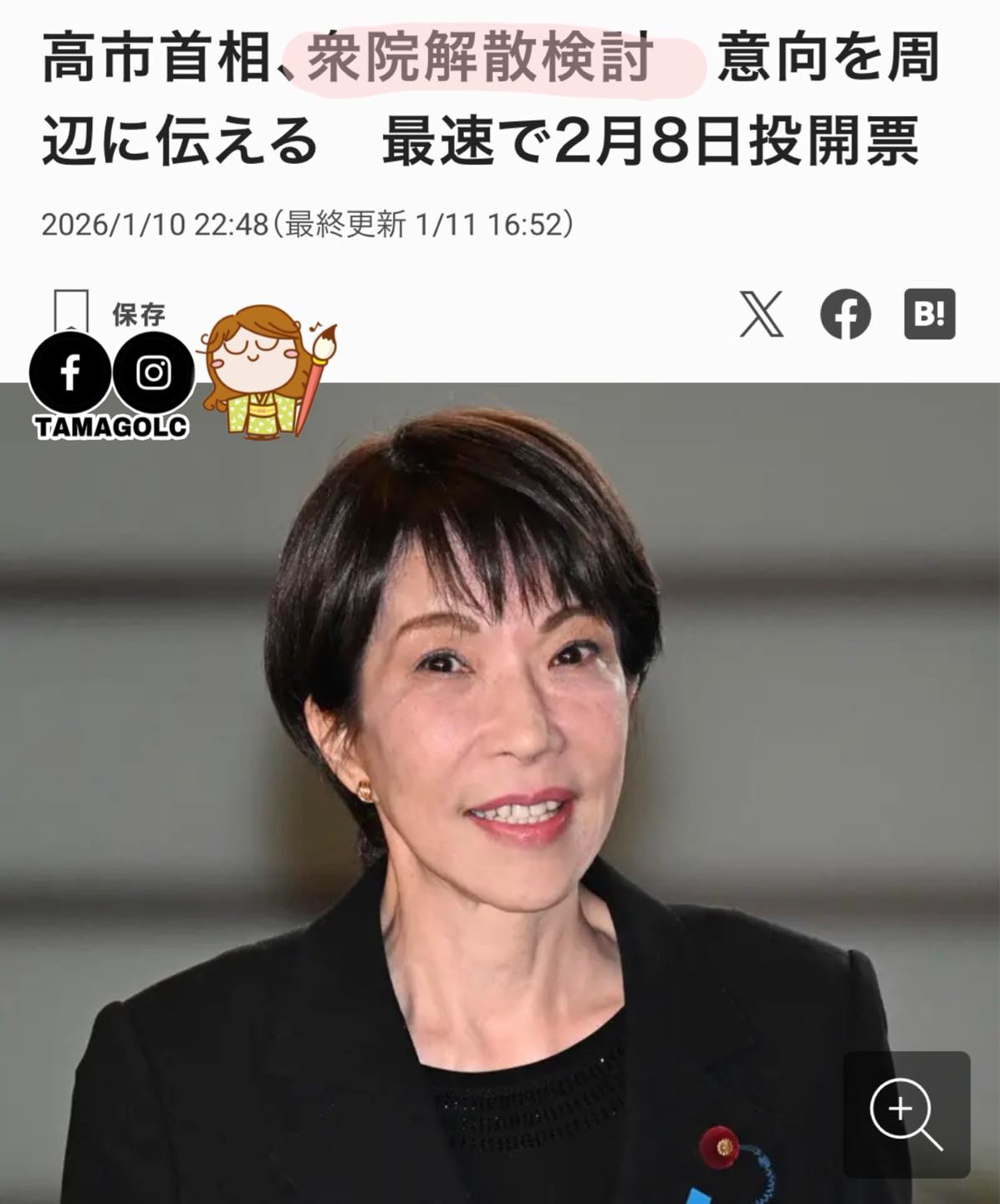 ★下一篇純私人喜好,我想特別說說「真冬の解散」的特點,看得懂就會知道高市早苗是的魄力與膽色實屬非凡。