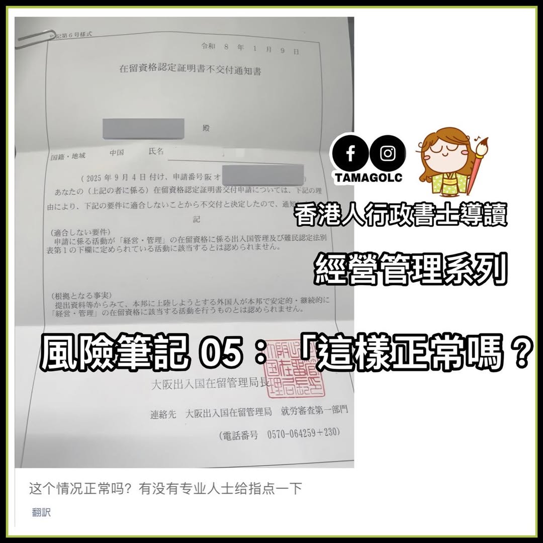 備註:這張不是更新簽證被拒,而是申請用「經營管理簽證入境」被拒。(先不用恐慌)
