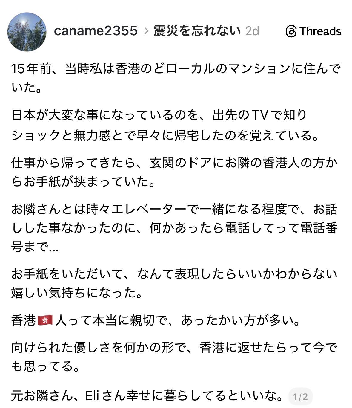 311大地震15週年,當年居港的日本人想搵返當日為佢送上溫暖嘅Eli & 佢主子。雖然只係搭電梯萍水相逢,連電話號碼都提供埋、認真希望幫到手嘅情誼令人動容哦❤️